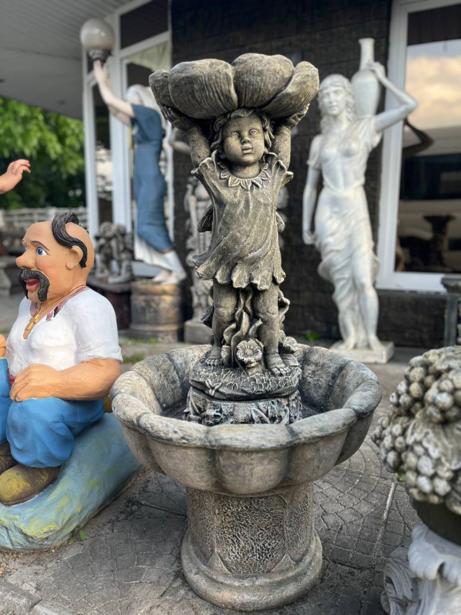 Приглашаем в мир изысканного водного искусства с фонтаном "Девочка цветок". Этот очаровательный изделие из вибробетона превратит ваш сад, патио или двор в место спокойствия и отдыха, где природа и искусство сливаются воедино.