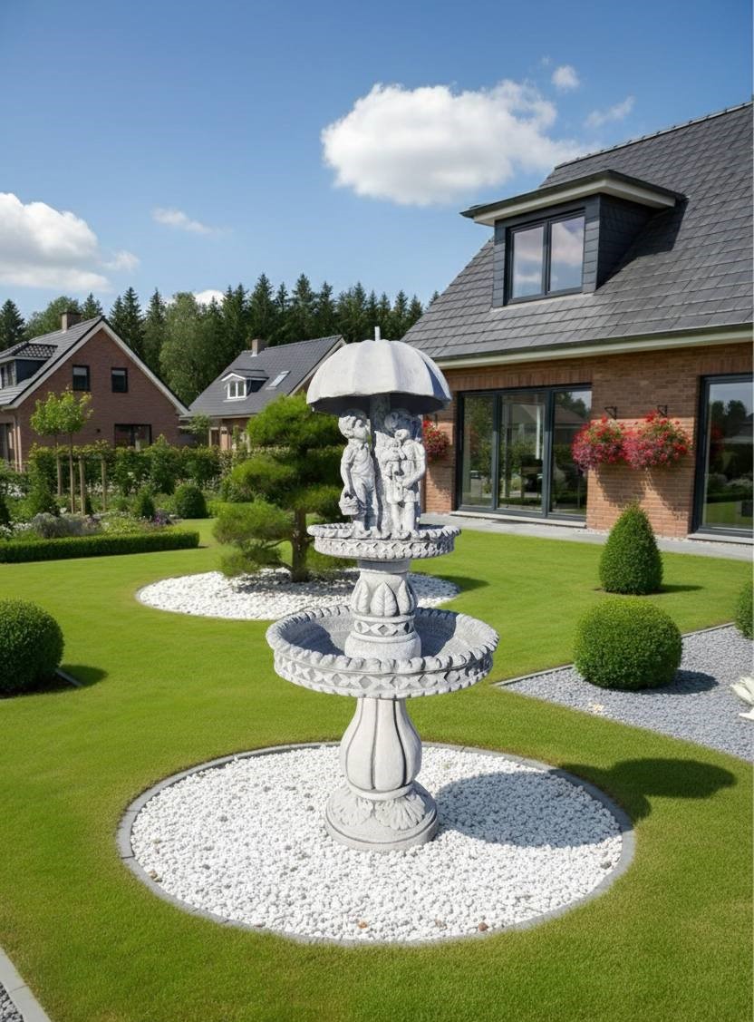 Виготовлений з високоякісного вібробетону, цей фонтан стійкий до негоди та має вражаючу довговічність. Кожна деталь, кожен контур виробу пророблений з ретельністю та майстерністю, завдяки чому фонтан виглядає так мальовничо та елегантно.