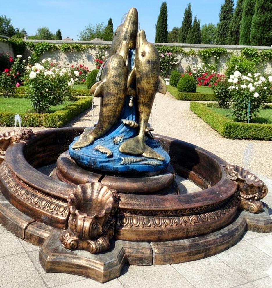 З висотою 200 см, статуя "Дельфіни" відзначається граціозністю та елегантністю. Його пропорції та деталі доповнюються ніжними струменями води, які ніби вплітаються в зеленість саду.